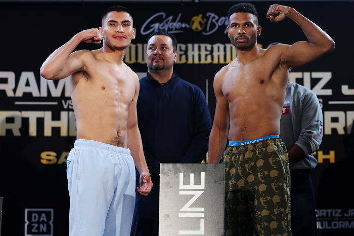 明日27日(日本時間28日)米カリフォルニア州フレズノのセーブマート・センターでゴールデンボーイ・プロモーションズ(GBP)が開催するイベントの計量が26日行われた。メインの12回戦で元WBC&WBO統一S・ライト級王者ホセ・ラミレス(米)がGBP移籍第1戦を行う。計量でラミレスは141.8ポンド(64.32キロ)、相手の元IBF・S・フェザー級&ライト級王者ランセス・バルテレミー(キューバ)は142ポンド(64.41キロ)をマークした。