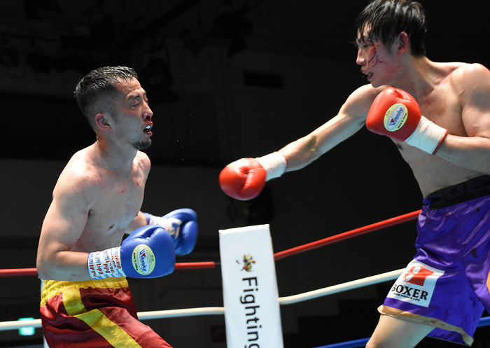 3回、柳堀が右ストレートをコツコツ当て出すが、宮本も左強打を一発ヒット。4回以降は柳堀が右を、宮本が左を上下に打ち込み、クリンチも多発の消耗戦に。柳堀が積極性で上回るものの、パンチのパワーでは宮本が上回る。