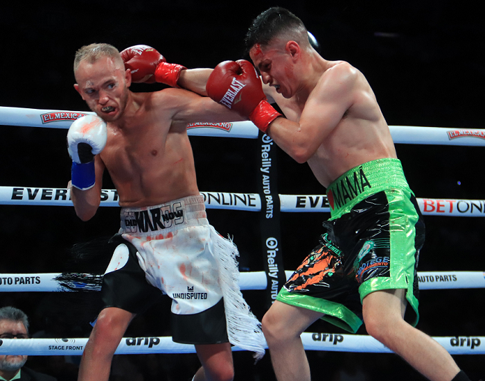 軽量級のスター候補“バム”ロドリゲスが実力を如何なく発揮してレジェンドを沈めた。サウスポーのロドリゲスは初回から左ストレートを決めてエストラーダの出鼻をくじく。2回、エストラーダは右をヒットしたが3回、王者のアタックをかわしたロドリゲスは右ジャブをコンスタントに浴びせてペースをつかむ。