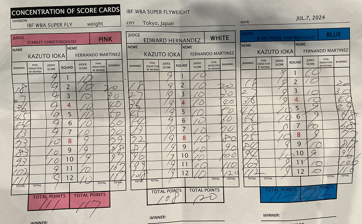 互いに譲らない互角の攻防が12ラウンド続き、両者ともに決定打は生み出せなかった。緊張の中、読み上げられたスコアは、意外にも差が開いてマルティネスだった。