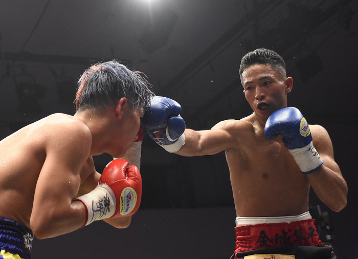3回、金城の右フックがヒットすると、平井が脚もひっかかってダウンした。金城は4回、ペースアップしてコンビネーションを繰り出し、左をコンスタントにヒットした。有効打を重ね続ける金城は7回にラッシュ。8回、金城の左連打で平井が沈んだ。金城は3勝2KO。平井は8勝1KO5敗。