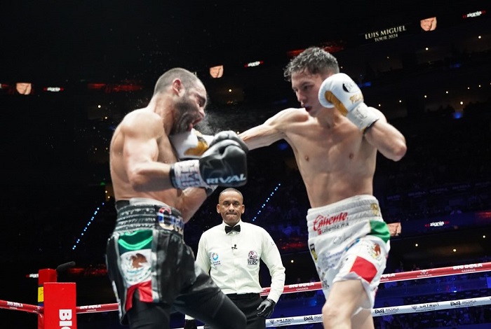 すでにメキシコでは世界チャンピオンに比肩する知名度を誇るピカソ(24)。最近2試合を米国で行い、これが10ヵ月ぶりの自国での試合となった。スピードで勝るピカソは的確なブローを決めてリード。ホバネシアン(36)は3回、左強打、右オーバーハンドを返してペースを拮抗させる。