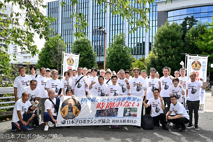 記者会見したJPBAの小林会長は「袴田先輩は長い間戦ってきた。早く本当の意味で自由の身になってほしい。日本プロボクシング協会には袴田巌支援委員会があり、業界を挙げて袴田さんをバックアップしている。今日ここに来ている人は一部だが、みんなが同じ思いでいる」と語った。