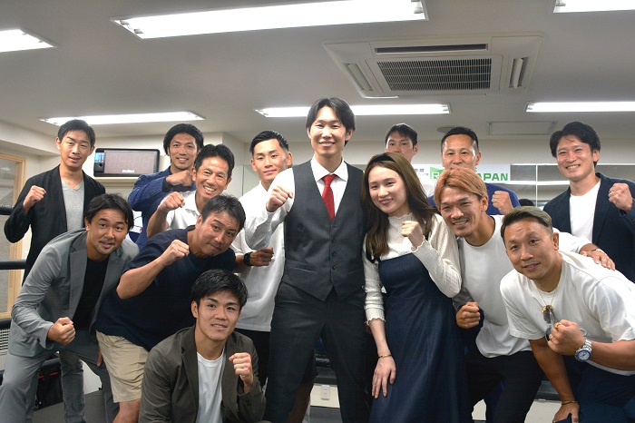 あいさつに立った中谷さんは「ボクシングと出会ったことで、僕の人生はまともにしてもらった。これからボクシングを通じ、会員さんをはじめみなさんに恩返ししていきます」と決意表明。村田さんは「中谷は愚直で、正直な男。彼は一人ひとりと向き合い、会員さんたちの人生をより豊かにしていけると思う」と賛辞を贈った。プロ加盟はしない方針で、中谷さんは妻小優希さんとボクシングフィットネスの楽しさを伝えていく。