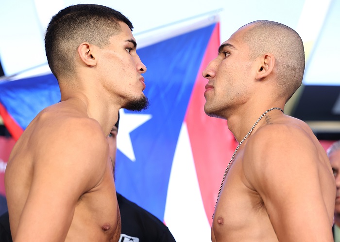 同じリングでS・ウェルター級ホープ、ザンダー・ザヤス(プエルトリコ=WBO3位)がダミアン・ソーサ(メキシコ)を相手にNABFとNABO王座の防衛戦。サヤス(19勝12KO無敗)は153.4ポンド(69.58キロ)、ソーサ(25勝12KO2敗)は153.6ポンド(69.67キロ)でリミットの154ポンドをクリア。