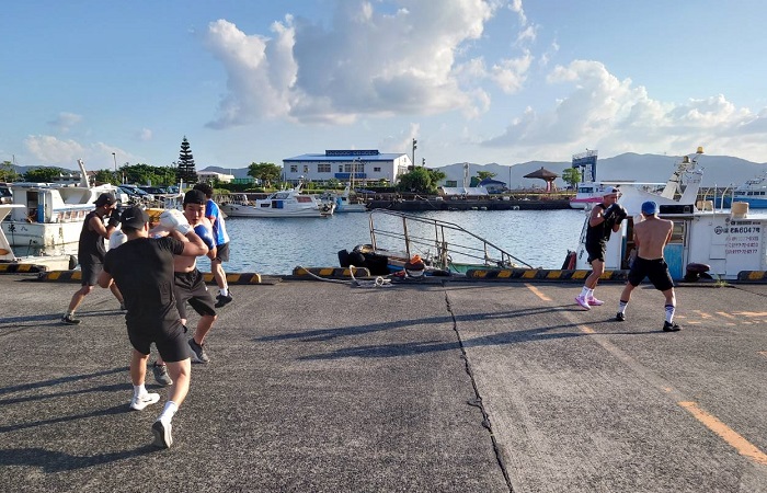前日本バンタム級チャンピオンの富施郁哉らワタナベジムのボクサー6名が9日から奄美大島でトレーニング・キャンプを行っている。(写真:ワタナベジム提供)