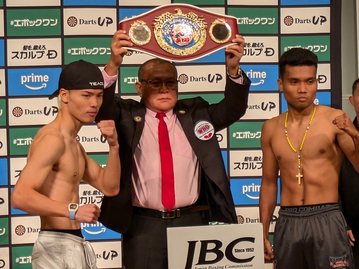 空位の王座を争うWBOアジアパシフィックバンタム級王座決定戦に出場する同級1位の那須川天心(帝拳)はリミットの53.5キロ。対する同2位のジェルウィン・アシロ(フィリピン)は300グラム軽い53.2キロだった。