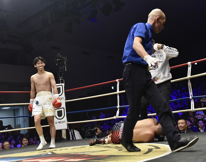 舛井海斗(協栄)[TKO1回2分13秒]中村駿介(輪島功一スポーツ)