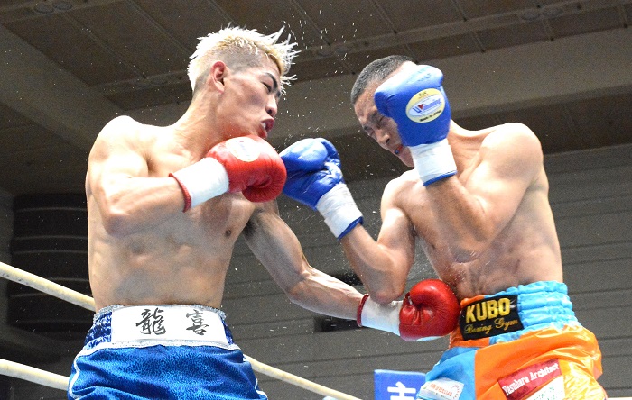 セミの62.5キロ8回戦は湯川翔太(36=江坂)と橋本拓也(33=ワイルドビート)がバッティングで3回負傷引き分け、セミセミのライト級6回戦は新鋭のサウスポー・小松直人(20=森岡)がベテランのベジータ石川(38=折尾)を1回に右フックで2度倒してTKO勝ちした。
