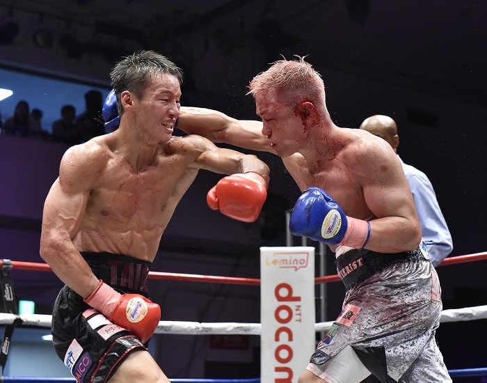 豊嶋は右アッパーでも再三、左右田の顔面を跳ね上げたが、左右田はまったく怯まずに左右を打ち返し、体の力でも上回ってみせた。手数、クリーンヒット、技術で豊嶋が大きくリードしたが、左右田の打たれ強さも相当だった。豊嶋は20勝11KO3敗1分。初黒星の36歳左右田は7勝4KO1敗1分。