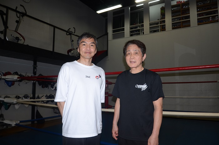 元日本ミニマム級王者・石澤開さんの引退セレモニーも催された(隣は村野健MTジム会長)
