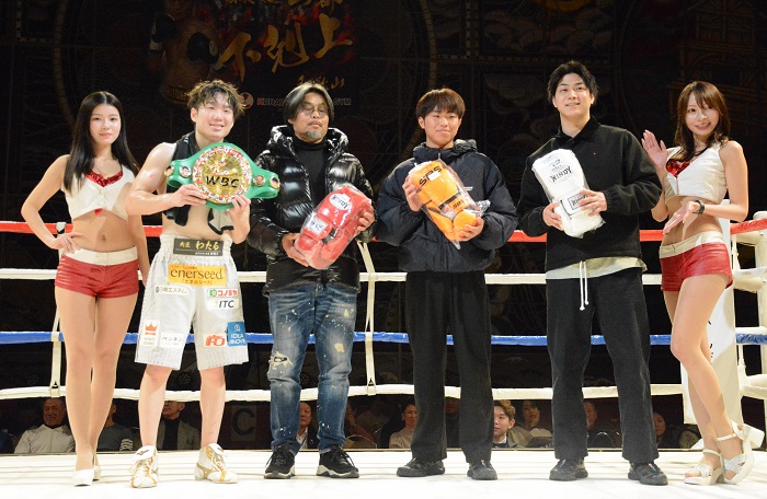 寺地は「いい緊張感を保ってスパーリングがやれました。2度目の統一戦。WBCとWBAのベルトを2本揃えてここに持ってきます」と観客にアピールした。リング上でサイン入りのグローブ、バンデージの抽選会も開かれた。