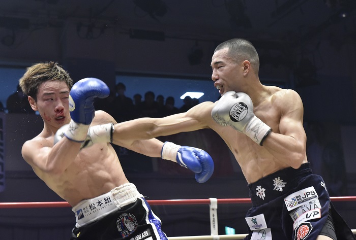 絶妙な距離に身を置いて李の攻撃をボディーワークでかわし、右を振りながら一気に飛び込んで左ストレートを当てる。渡来の思いきりよい攻撃に、左カウンター狙いのサウスポー李は前半に後手を踏んだ。