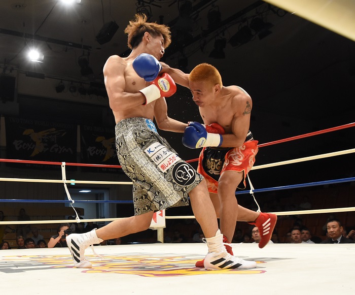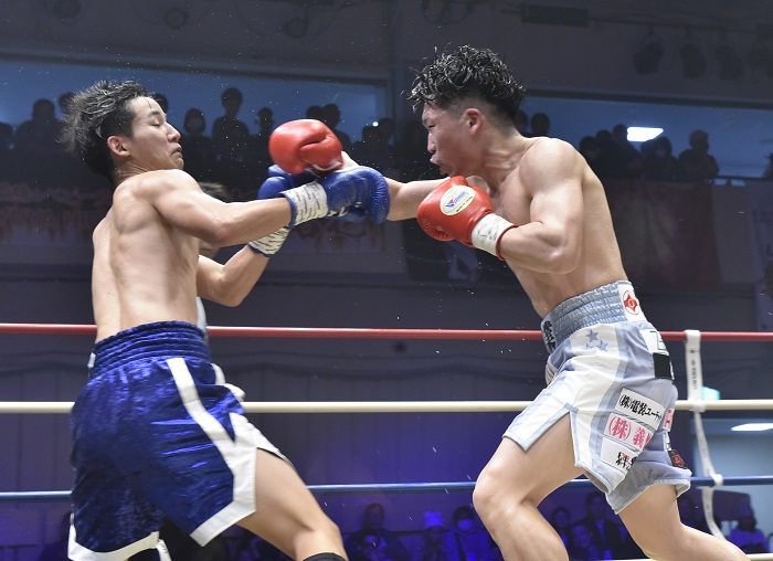 サウスポーの上村が左にじりじりと動きながら、インサイドジャブ、左ストレートを狙うと、玉山は距離を詰めて接近戦を挑む。互いにショートアッパーの応酬となるが、左ボディーブローもまじえる玉山が徐々にリード。迎え打つ上村はどうしても受け身になりがちで、より重心を低くして攻める玉山との差も表れた。