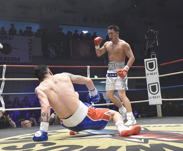 7回、左フックの相打ちでダウンを奪った荒本だが、その後はベクが手数を増やし、最終8回には右アッパーの上下打ちで煽られて、見栄えの悪いスリップダウンを繰り返し、印象を悪くした。モンゴル出身で韓国を拠点に戦うベクは3勝2KO1敗。
