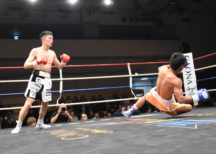 そのほか、S・フェザー級8回戦では日本同級11位の李鎮宇(DANGAN)が佐藤諄幸(厚木ワタナベ)に5回1分25秒TKO勝ち。