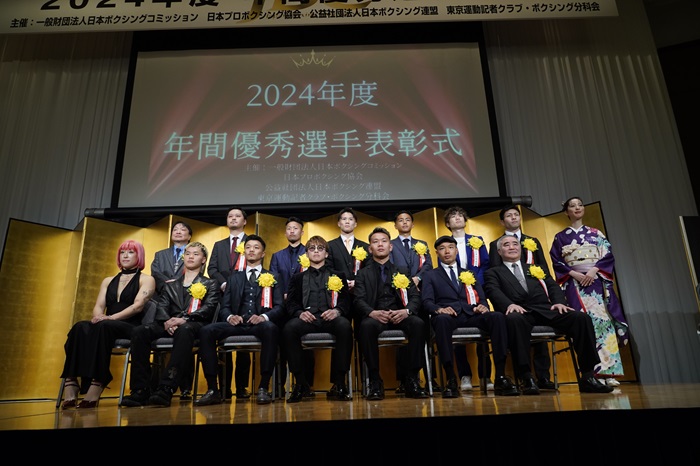 24年の年間優秀選手表彰式が31日に東京ドームホテルで盛大に開催された。プロ最優秀選手賞の井上尚弥(大橋)を筆頭に表彰選手が一堂に会した。