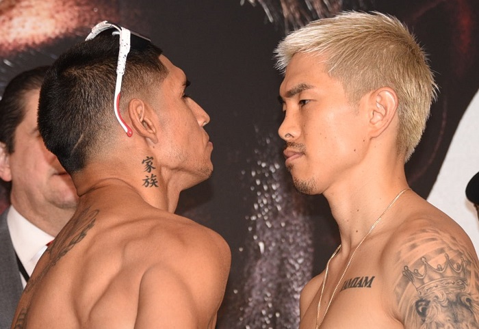 これがV4戦となるナバレッテ(39勝32KO2敗1分=30)は計量1回目で130.4ポンドを計測。全裸になってハカリに乗ったが130.3ポンドとオーバー。2時間の猶予が与えられ、リミットに落とし事なきを得た。昨年WBOライト級王者デニス・ベリンチクに挑戦し失敗したナバレッテはS・フェザー級にUターンして統一王者を目指すと明かしているが、減量に苦労しているようだ。