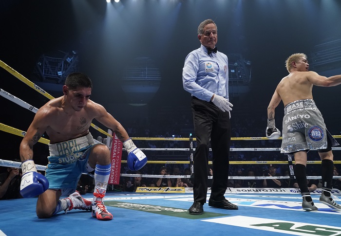3回、バッティングで左目上をカットしたアルボレダをじわじわと追い込んだ堤は、右からの左フックでダウンを奪うと、連打からの右フックでレフェリーストップに持ち込んだ。