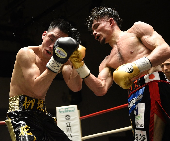 荒々しいアオキのチャージは迫力あるが、栁堀も左ボディーを差し込み、勢いを削ぐ。とにかく近づいて強打を当てたいアオキに栁堀は、左ボディー、右アッパーをヒット。ペースを手繰り寄せるかと思われたが6回、アオキの左フックが栁堀の顔面を跳ね上げ、追撃の連打でダウンを奪った。栁堀のパンチが的確に捕らえるシーンも多かったが、それでも振って出続けたアオキはタフネスを示して押し切った。