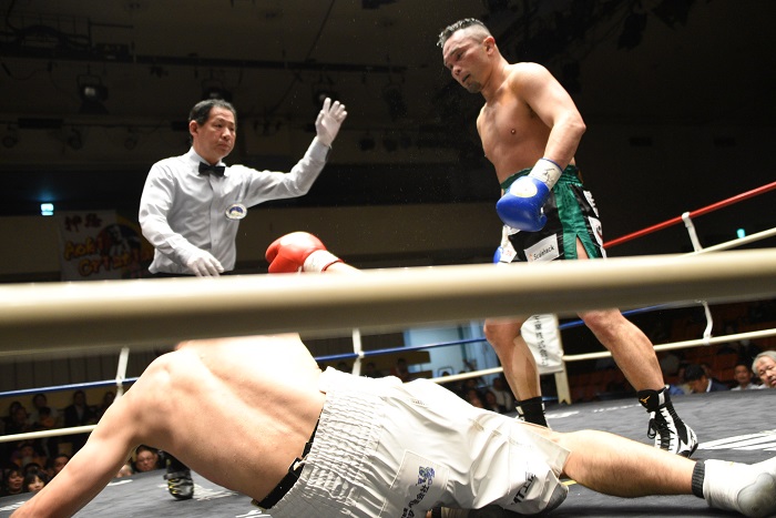 3回、鈴木はコーナーへと詰め左ボディーを効かせると、最後は右を引っ掛け金からダウンを奪う。最後も左ボディーを打ち込み、悶絶する金にテンカウントを聞かせた。