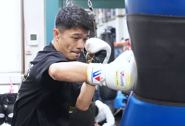 「長く想いを持っていた統一戦」実現への感謝、抜かりない調整がそうさせているのだろう。詰めかけた報道陣を前に、シャドーボクシング、サンドバッグ打ちはそれぞれ1ラウンドずつと軽いお披露目だったが、鋭く重い左ストレート、右フック、連打に織り交ぜるアッパーカットがゾクッとさせた。