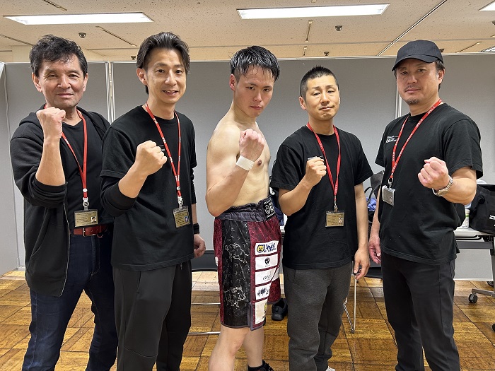 唯一のKO決着は第8試合のS・フェザー級東日本新人王予選。初回に左ボディで倒し、幸先のいいスタートを切った保木井樹(FUNABASHI E-BOX)が2回開始早々、やっちまったなぁ海斗(UNITED)をロープ際に詰め、防戦一方になったところでレフェリーが割って入った。保木井も準々決勝に進出。