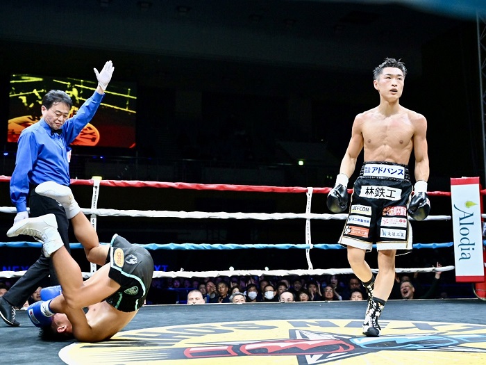 また、東京五輪フライ級銅メダリストのサケン・ビボシノフ(カザフスタン)がS・フライ級6回戦でプロデビュー。クリスティアン・レガネ(フィリピン)を初回KOに下した。