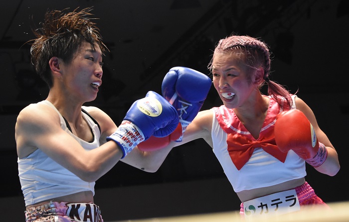宗利も諦めず、最終回はお互い正面から打ち合って終了のゴングを聞いた。初防衛に成功し、戦績をイーブンにしたモンブランは8勝2KO8敗1分。敗れた宗利は4勝2KO3敗。試合後のリングには東洋太平洋王者の狩野ほのか(TEAM10COUNT)が上がり、お互いのタイトルを賭けた第3戦(狩野の2勝)を約束した。