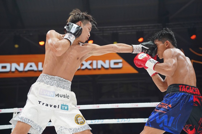 初の長丁場戦だった佐野は、中盤以降、ゆったりとした自分のテンポにタガカナオをはめ込んで、すいすいとマイペースで動き回った。佐野(22歳)は11勝5KO1分。タガカナオ(26歳)は11勝9KO1敗。
