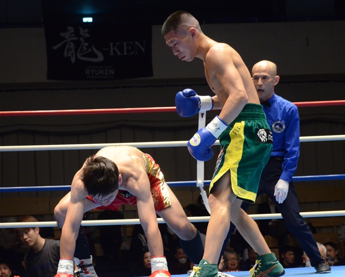 吉田の追撃に一旦は耐えた比連崎だが、右ストレートの同時打ちでぐらり。そのままバランスを保ち切れずダウン。ここで岡庭レフェリーがストップを宣した。