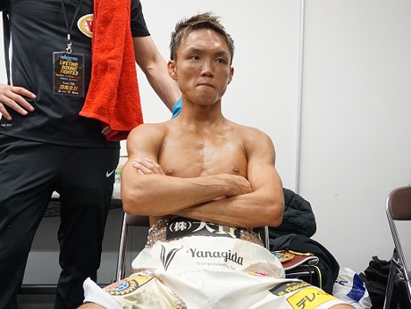 しかし左フック、ボディー打ちを返した堤は4回、打ち合いからチャージ。左フックから右フック2発をねじ込むとキンタナは四つん這いに。立ち上がったがレフェリーはストップをコールした。TKOタイムは1分14秒。