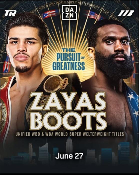WBA&WBO世界S・ウェルター級王者ザンダー・ザヤス(プエルトリコ)と同級WBA暫定王者ジャロン“ブーツ”エニス(米)が対戦に合意した。トップランクにプロモートされるザヤス(23勝13KO無敗)とマッチルーム・ボクシング傘下のエニス(35勝31KO無敗1無効試合)は6月27日、ニューヨークのバークレイズ・センターで雌雄を決することになった。2人ともSNSで対戦同意を報告している。