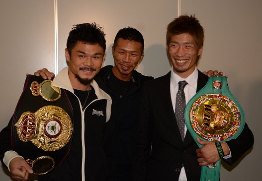 大晦日のトリプル世界戦(東京)で勝利を飾った3人のチャンピオンが2日午後、東京・虎の門のテレビ東京内で揃って記者会見し、試合を振り返り今年の目標を語った。