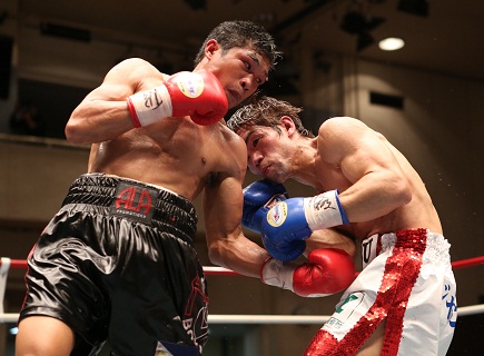 天沼圭介(ワタナベ)[負傷判定 4回2分49秒引き分け1-0(39-38、38-38×2)]鳥越勝馬(本多)