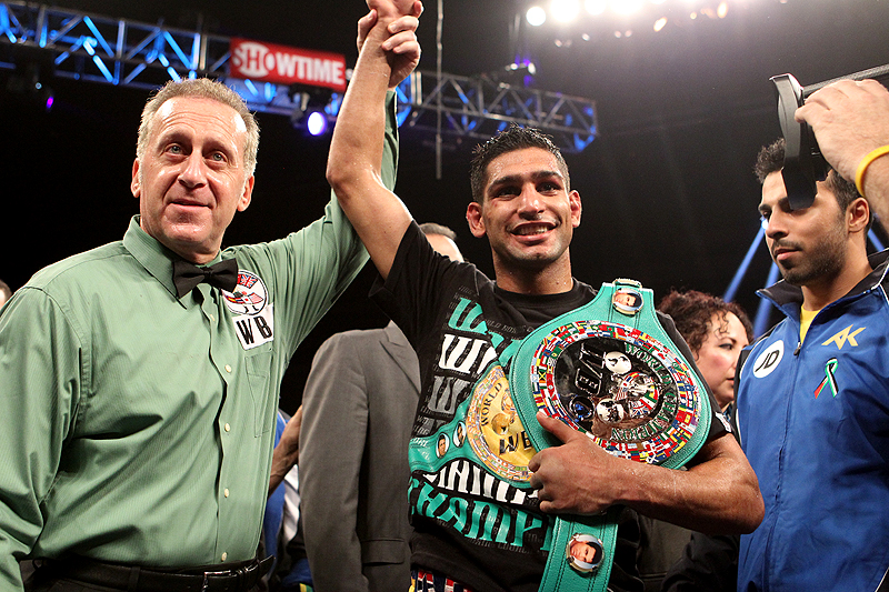 15日夜(日本時間16日)ロサンゼルス・スポーツ・アリーナのメインに登場した元S・ライト級統一王者アミール・カーン(英)がカルロス・モリナ(米)に10回終了TKO勝ちを収めた。