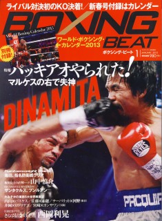 ボクシングビート1月号が発売 試合情報(日本語) X Facebook はてブ LINE Pinterest コピー 2012.12.14 ボクシングビート1月号が15日発売となります。パッキャオ衝撃の失神KO負けを速報しているほか、先日引退を発表した西岡利晃選手の引退記念グラフ、大みそか5大世界戦展望、タイ特集、新春号企画「2013年の夢を語ろう」などなど、盛りだくさんの内容となっています。 また、今月号では毎年ご好評をいただいております「ワールド・ボクシング・カレンダー2013」が付録になっています。ぜひお求めになってください!