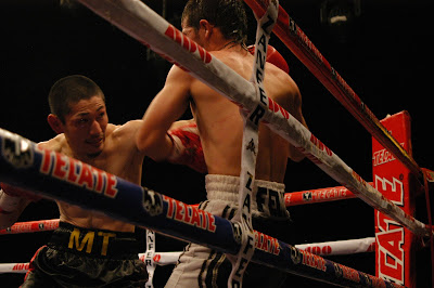 5ヵ月ぶりのリングとなった岡田が前進して仕掛けるが、ルビオは人を食ったような動きで幻惑しようと試みる。それでもラウンドが進むごとに岡田はプレスを強めて手数を出し、メキシカンは口を開けて苦しそう。5、6回、相手をロープへつめて追い込んだ岡田だったが、ルビオは散発ながらパンチをリターンして抵抗した。