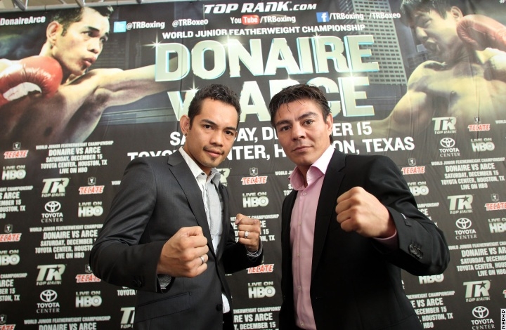 西岡利晃とのS・バンタム級ビッグマッチを制した“フィリピーノ・フラッシュ”ノニト・ドネア(比国)の次回防衛戦が決定した。相手は長きにわたり軽量級トップシーンに君臨するホルヘ“トラビエソ”アルセ(メキシコ)。12月15日、米テキサス州ヒューストンのトヨタセンターで行われる試合を前に、2人は同地でプレゼンテーションに臨んだ。試合はドネアが保持するWBOタイトルが争われる。