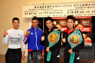 WBCバンタム級戦は王者山中慎介(帝拳)がリミットの53.5キロ、7位挑戦者トマス・ロハス(メキシコ)が53.3キロ。WBCフライ級戦は王者五十嵐俊幸(帝拳)が50.8キロ、挑戦者ネストール・ナルバエス(アルゼンチン)は300グラム・アンダーの50.5キロだった。試合前日の検診結果も発表され、コミッションドクターは「すべての選手が問題なし」と説明した。