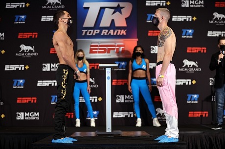 柔軟な上体の動きからジャブを突くテランにサンチェスは3回から強引にボディーを攻める。5回、ボディーを集中砲火するサンチェスの前にバックステップを踏んだテランの姿に、結末が早いことを予感させたが、中盤メキシカンのアタックは正確さを欠き、長続きしない。10回、ベネズエラ人の反撃を浴びヒヤリとしたサンチェスだが、続く11回、幸運なノックダウンを奪い逃げ切った。スコアは3ジャッジ(全員女性)とも116-111でサンチェスを支持した。