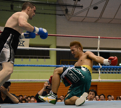 金子がTKOで再起、胡はダウン応酬のKO負け