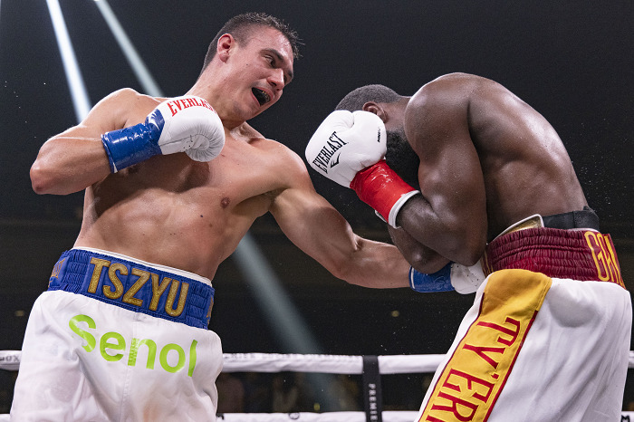 試合はサウスポーの湯場がスタートから左ストレートを巧みに決めて優勢を築き、その勢いを持ち込んだ2ラウンド、左右の連打でダウンを奪い、レフェリーストップのTKOでフィニッシュした。格段の強さをアピールした湯場は今後について「周りに世界をやった人がいるので、自分もモチベーションを上げながら戦っていきたい」と35歳にして意気けんこうだった。
