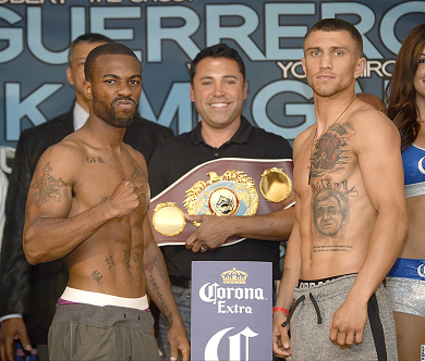 現地時間の21日土曜日(日本時間22日)ロサンゼルス近郊カーソンのスタブハブ・センターのテニス場で挙行される試合の計量が20日行われ、メインのウェルター級12回戦、WBO世界フェザー級王座決定戦に出場する選手が無事クリアした。 いよいよゴングを待つだけの亀海とゲレロ