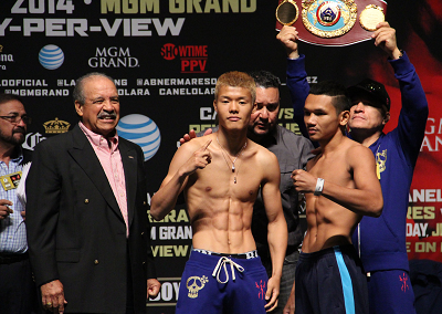WBO世界バンタム級チャンピオン亀田和毅が明日12日(日本時間13日)ラスベガスのMGMグランド・ガーデン・アリーナで2度目の防衛戦に臨む。11日午後行われた計量で和毅はリミットの118ポンド(53.52キロ)、挑戦者で元王者のプンルアン・ソーソンユー(タイ)は117ポンド(53.07キロ)でクリアした。