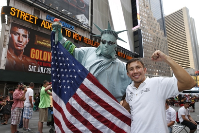 今週土曜日26日(日本時間27日)米ニューヨークのマジソン・スクエア・ガーデン(MSG)でダニエル・ゲール(豪州)と防衛戦を行うWBA世界ミドル級スーパー王者のゲンナジー・ゴロフキン(カザフスタン)が21日、試合地のニューヨーク入りした。