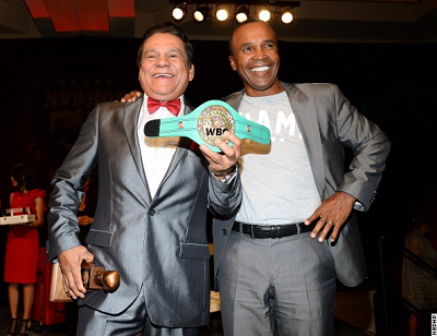 第2回ネバダ・ボクシング殿堂の2014年授賞セレモニーが先週9日、ネバダ州ラスベガスのザ・ニュー・トロピカーナで開かれ、集まった多くのファンや関係者から祝福を受けた。 カメラの前でご機嫌のデュランとレナード