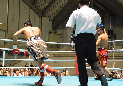 国際式のキャリアは7戦ながらムエタイで豊富な実績を誇る強打者ジョムトーンに、地元の期待を背負った中真が挑んだ。その中真は2回、右ストレートをきれいに決めてダウンを奪う。しかし結果的にこれが唯一の見せ場となってしまった。