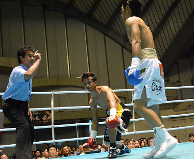 セミでは沖縄出身の翁長吾央(大橋)がサムラーンサック・シンマナサック(タイ)とS・フライ級8回戦。翁長は初回右フックでダウンを奪い楽勝ペースかと思われたが、2回に右を決められてダウンを喫するまさかの展開。しかし効いたダウンではなく、立った後は冷静に右フックをカウンターで叩き込み、2回KOで試合を終わらせた。