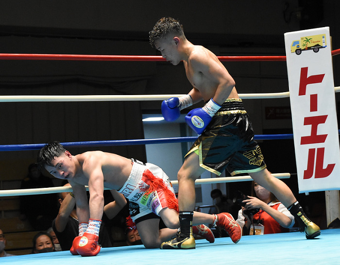 2ラウンドからチャベスが左右ボディーを中心にプレスをかけてリード。4回、マンフレドが勇敢に打ち返し、ヒートアップする。しかし5回、チャベスの右が急襲。グラついた挑戦者はロープへ避難したが、チャベスは雨あられの連打で追い詰め、ストップに持ち込んだ。